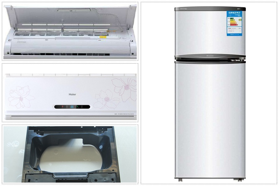 冰箱麵板,空調麵板、空調骨架、空(kōng)調格柵、洗衣機中控板、洗衣機盤框、遊戲機、VR外殼汽車(chē)內飾。