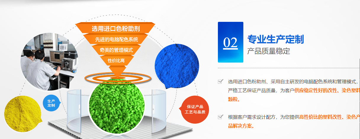 選用進(jìn)口色粉、專用助劑,PS染色加工後性能保持性好。公司具有完善的質量管控係統,采用奇美集團(tuán)自主研發(fā)的先進電腦配色係統,配色速度快,批次色差小、顏色穩(wěn)定,易於(yú)生產加工,為客戶降低生產成本;原料采用奇美ASA材(cái)料染色,確保材料性能穩定,保證質量;根據客(kè)戶不同需求,提(tí)供一對一的定製化服務,現場提供技術支持,為客戶解決問題,所做產(chǎn)品均滿足Rohs、REACH等歐盟對有害物質管(guǎn)控的要求,可為(wéi)客戶提供各種檢測報告。公司通過了(le)ISO9001質量管理體係、ISO14001環境(jìng)管理體係和ISO45001職業健康安全體係,全球回收標準GRS認證。