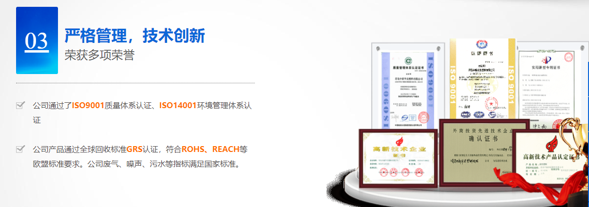 公司擁有專業的研發(fā)團隊,根據客戶要求定製開發,快速提供(gòng)樣料試樣,滿足客戶新產品開發要(yào)求。專業的檢(jiǎn)測人員對每一批產品進行全性能檢測(cè),產品出廠時都會提供性能檢測報告,質量好,有保障! 可提供無鹵證書、UL黃卡、氧指數(shù)、煙密度、灼熱絲證書等(děng)。公司通(tōng)過了(le)ISO9001質量管理體係、ISO14001環境管理體係和ISO45001職業健(jiàn)康安全(quán)體係,全球(qiú)回收標準GRS認證。